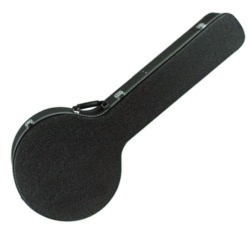 This black, Tolex covered, banjo case is just what you need to protect your instrument from the rigors of the road. The hardshell case is constructed with a tough 5-ply, cross laminated wood core with plush lining over a soft foam padding interior to act as a shock absorber. This case also offers a screwed-in neck brace, heavy duty gold plated hinges and locking latches with an inner compartment to hold extra strings, straps, picks, slides, etc.